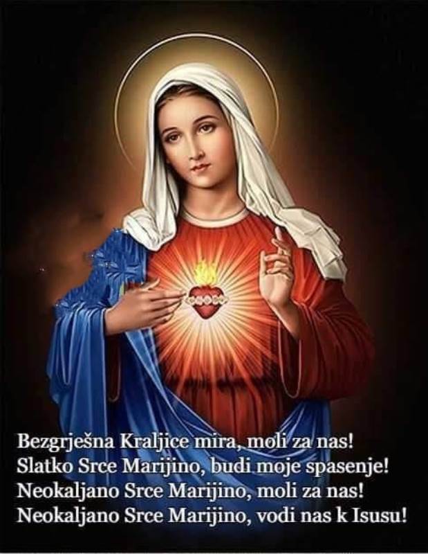 Presveta Djevice Marijo, Majko i kraljice moja, Tvojemu bezgrješnom Srcu posvećujem i predajem čitavo svoje biće: svoje misli, riječi i djela.