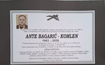 Tužnim srcem i bolom u duši javljamo svoj rodbini i prijateljima tužnu vijest da je naš dragi Ante Bagarić-Komlen, blago...