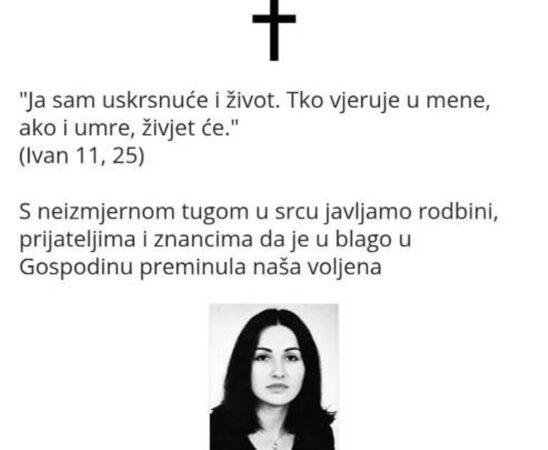 S tugom u srcu i bolom u duši javljamo svoj rodbini i prijateljima tužnu vijest da je naša draga Marija...
