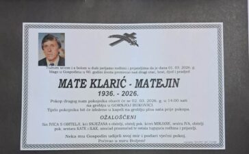 Tužnim srcem i bolom u duši javljamo svoj rodbini i prijateljima tužnu vijest da je naš dragi Mate Klarić-Matejin blago...