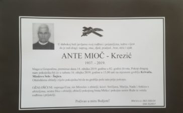 U dubokoj boli javljamo svoj rodbini i prijateljima da je naš dragi Ante Mioč - Krezić iz Šujice, blago u...