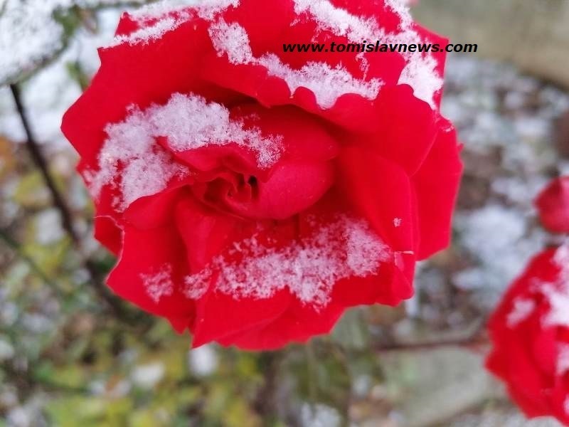 Vjerujemo da ste se dobro naspavali, lijepo sanjali i prvu jutarnju kavu pijete s dragim osobama, a pogled kroz prozor je idiličan: snijega malo napadalo tek pokrio brijeg, a zvijeri još ne mogu ostaviti dublji trag! Zato će danas, izgleda, nastaviti padati i neka-bilo mu je vrijeme padati i sve ružno iz prošle godine prekriti i istopiti, kako bismo zaboravili na njih, a počeli s dobrotom, ljepotom, na početku godine neka nam snijeg bude samo poticaj optimizmu, kao što je ovoj duvanjskoj ruži snijeg lijep ukras, kao da je netko noćas po njoj prosuo bisere!