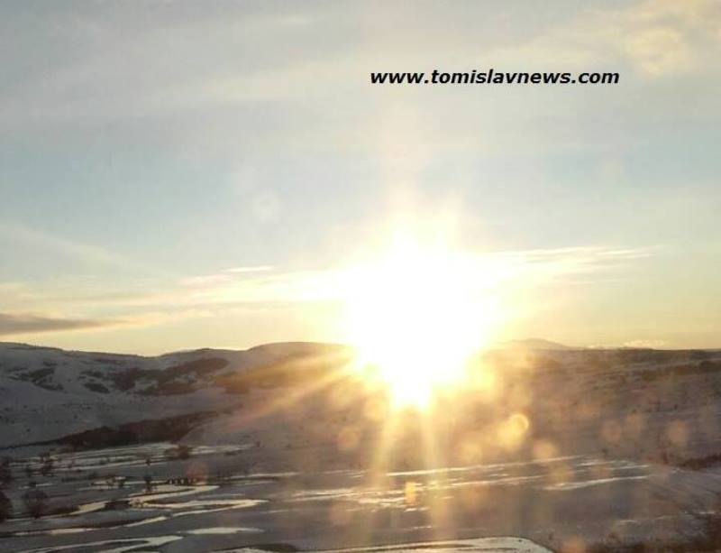 Temperatura zraka je 2 stupnja C, puše slab vjetar, nebo nad duvanjskim krajem uglavnom je vedro, ima magle i ponegdje tankih oblaka, ali sunce već proviruje iza njih i baca svoje oštre zrake da rastjeraju maglu i oblake.