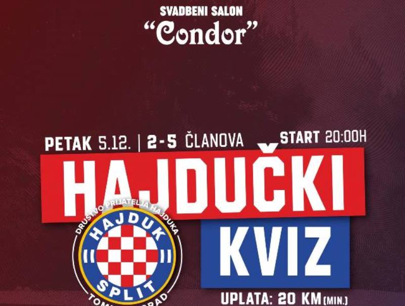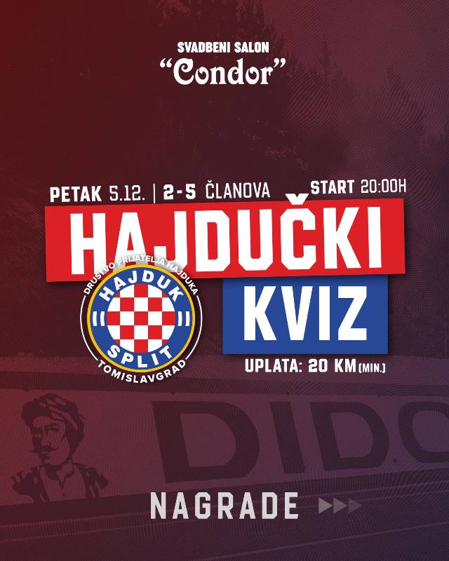 DPH Tomislavgrad organizira hajdučki kviz, dođi 5.12 u Svadbeni salon Condor i pokaži svoje hajdučko znanje i osvoji vrijedne nagrade! ![]()