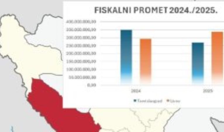 FISKLANI promet u Tomislavgradu u siječnju 2026. godine bio je 34.485.000, a u Livnu 29.100.000 KM