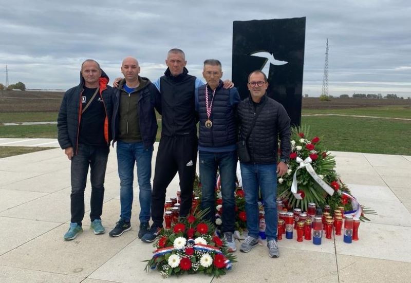 Nakon što su trkači došli do daha, momci su položili vijenac i zapalili svijeće za poginule hrvatske branitelje.