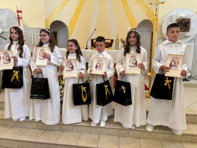 Ove godine je bilo šest (iduće godine bit će 12 ) prvopričesnika. Sva djeca su vrlo radosno i opušteno čitali misna čitanja i molitvu vjernika i recitirali svoje razne lijepe dirljive recitacije.