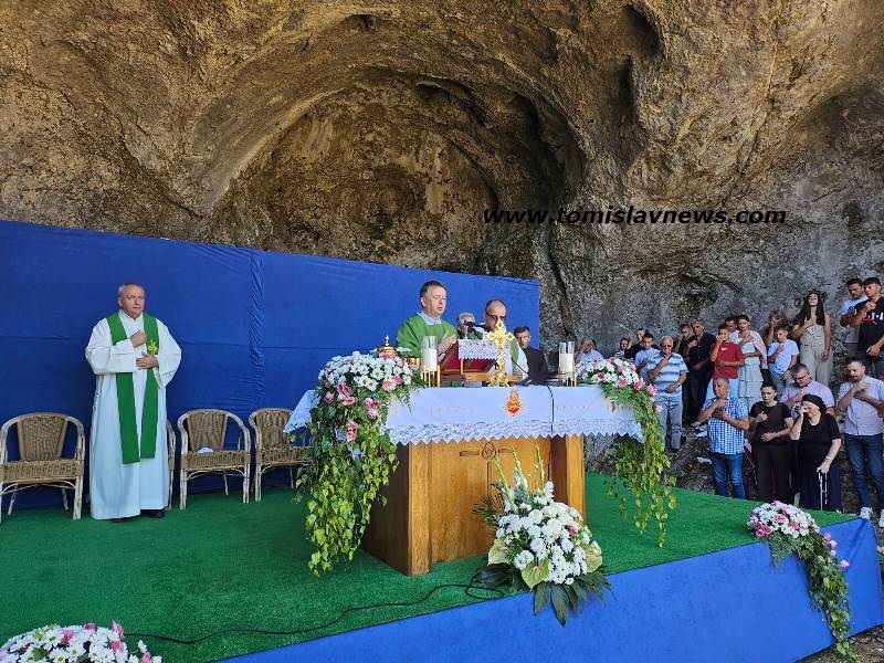 Tako je bilo i danas, po velikoj vrućini, uz nazočnost brojnih vjernika, od kojih veliki broj pristigne iz tuđine, sveto misno slavlje služeno u Pećini-katedrali u Bukovici.