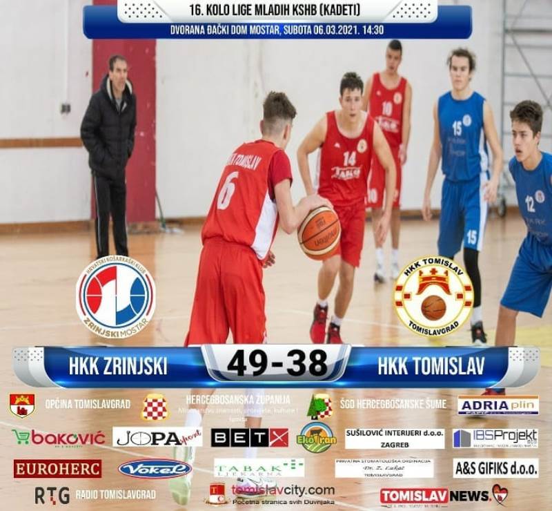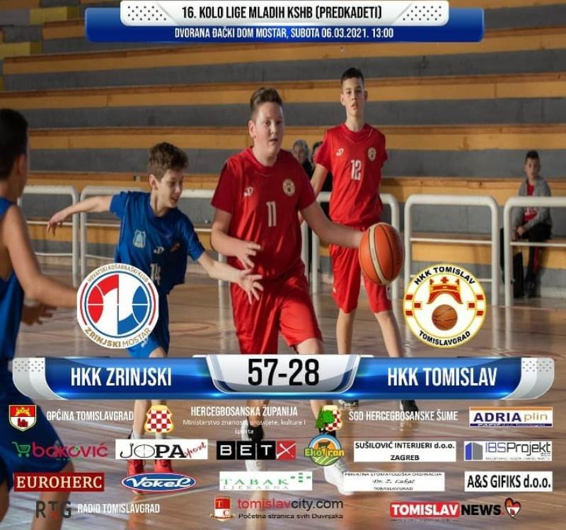 U subotu 6.ožujka, 2021. godine mlađe kategorije “Tomislava”, selekcija predkadeta i kadeta gostovale su u Mostaru kod Zrinjskog i u obje utakmice poraženi. Ekipa predkadeta rezultatom 57-28, dok su kadeti poraženi rezultatom 49-38.