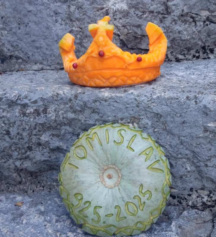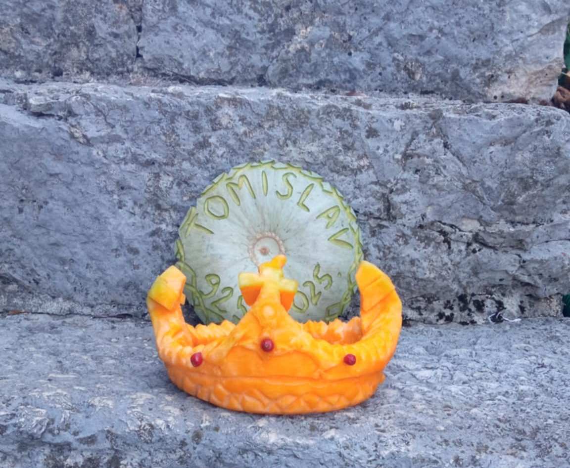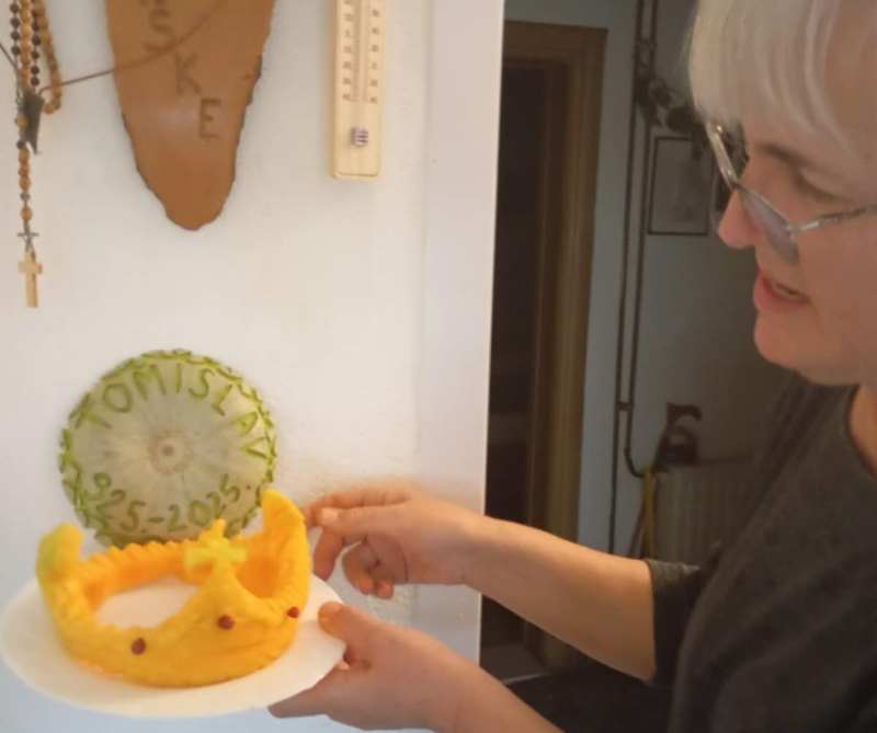 Prva je i ima mana, ali je od srca. Oblik tikve me izazivao oblikovati krunu, svjesna da je daleko od prelijepog predloška. Snimljeno jutros na kamenim škalinama koje je gradio Tomislav Šiško ranih šezdesetih (20. st). Danas ću je ponijet u Učeničku zadrugu “Raž” u Aržano i darovati učenicima, kako bi vidjeli da nema materijala koji se ne da oblikovati po želji, samo treba biti malo maštovit, a više kreativan”, piše nam ovo i fotografije šalje prof. Ljubica Mihaljević rodom iz Šiška-Vinica, koju voli i u koju rado dolazi.