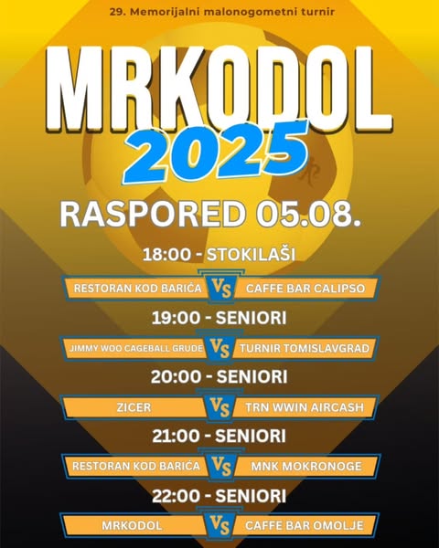 Danas je na turniru slobodan dan zbog velikog koncerta Thompsona u Sinju, program nastavljamo sutra pa vam donosimo i raspored.
