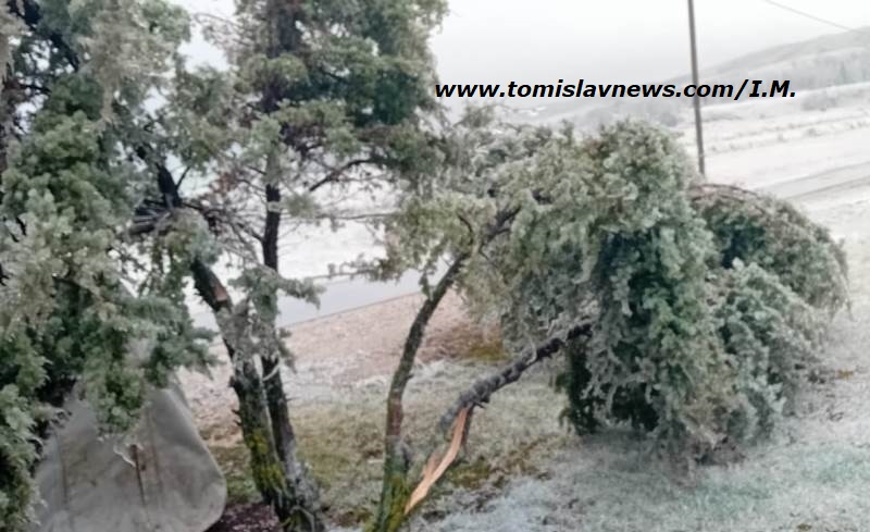 Ledena kiša udružena s jakim vjetrom lomila je stabla, prekinula el. kabele pa je nestalo struje…
