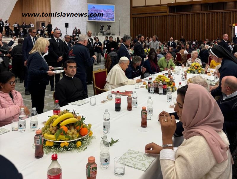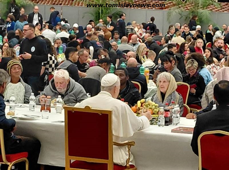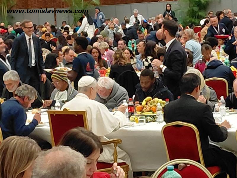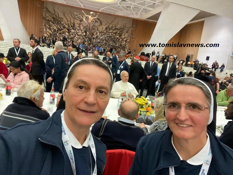 Zajedno s našim sestrama iz Slovenije i Ukrajine, u ime hrvatske provincije siromahe je posluživala s. Kaja Ljubas, koja već nekoliko godina volontira u udruzi Savao. S. Kaja i s. Marta Meško imale su čast posluživati stol za kojim je sjedio papa Lav.