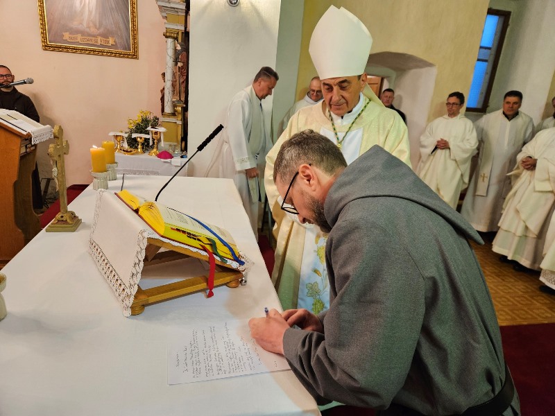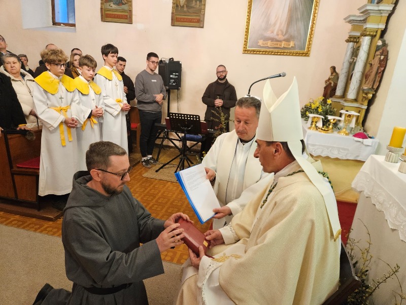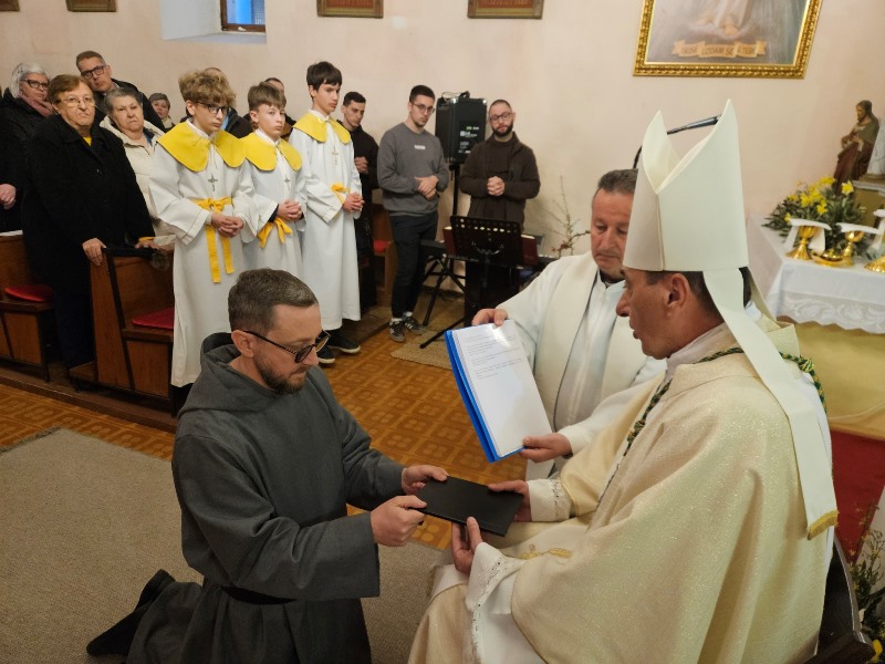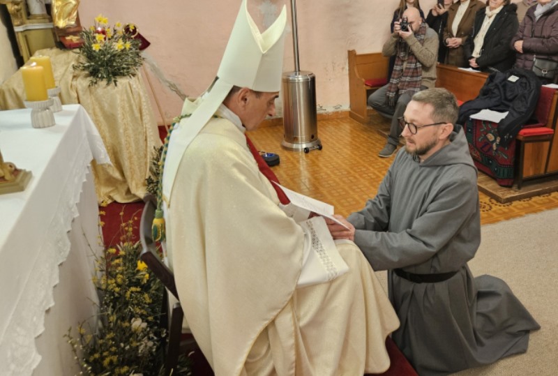 Gospićko-senjski biskup Marko Medo predvodio je u srijedu, 18. ožujka, u župnoj crkvi sv. Ivana Krstitelja u Donjem Kosinju, svečano misno slavlje tijekom kojega je brat Marinko od Presvetog Imena Isusovog Klaić položio doživotne zavjete čistoće, siromaštva i poslušnosti.
