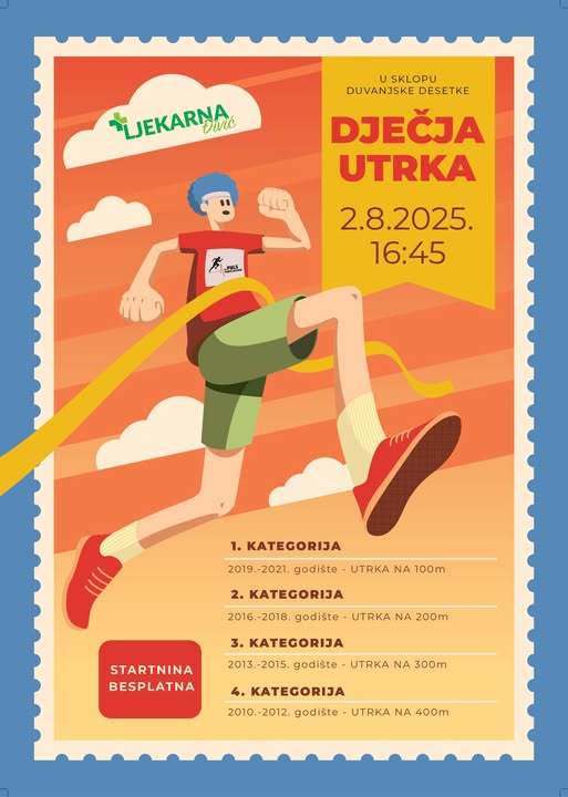 Kao uvertira u glavni događaj, u subotu (2. 8.) će na rasporedu biti Dječja utrka . Prijave za ovu utrku vršit će se na sam dan utrke ispred zgrade Općine od 14:30 do 16:15, a start će biti u 16:45.