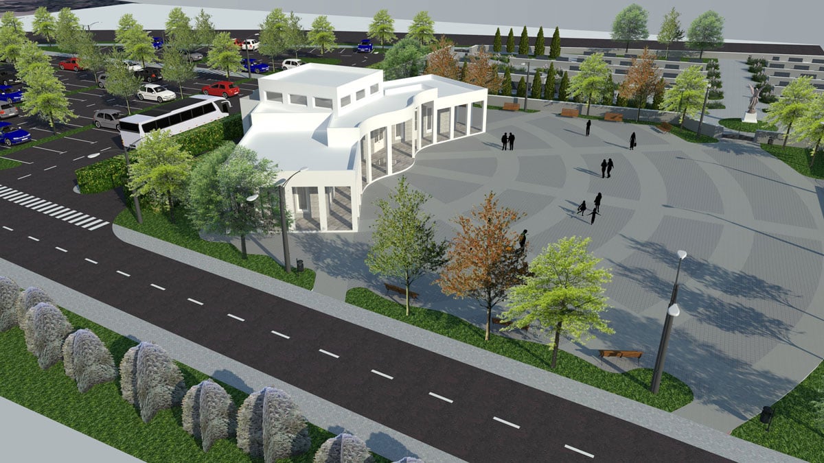 Nakon sto su završeni radovi na izgradnji mrtvačnice groblja Karaula, započeli su radovi na izgradnji oproštajnog trga i ogradnih zidova oko oproštajnog trga.