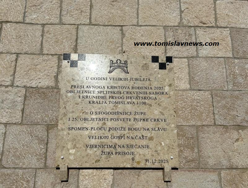 Nakon misnog slavlja uslijedilo je svečano otkrivanje spomen-ploče, podignute u godini velikih jubileja: preslavnoga Kristova rođenja 2025., 1100. obljetnice splitskih crkvenih sabora i krunidbe prvoga hrvatskog kralja Tomislava, te u povodu stogodišnjice župe i 25. obljetnice posvete crkve.