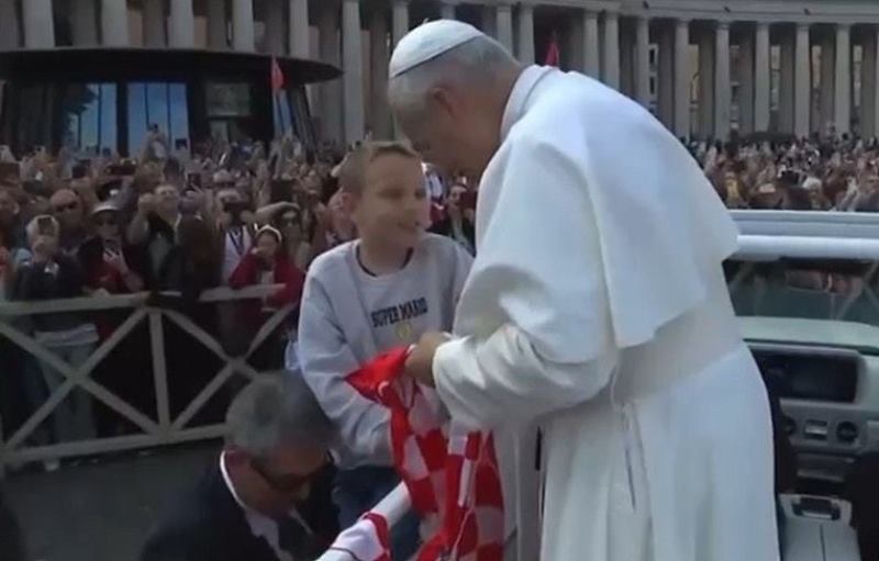 www.tomislavnews.com/Hina/Foto instagram: Dječak iz Tomislavgrada Petar Šarić Svetom Ocu darovao je šal s hrvatskim obilježjima