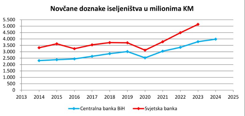 Jasno je, dodaje, kako ti transferi dolaze, upravo, zbog lošeg socijalno-ekonomskog stanja onih koji žive u BiH i pretpostavljamo, navodi, da je to najugroženija populacija stanovništva od umirovljenika, odnosno nezaposlenih do onih koji rade u nisko plaćenim sektorima.