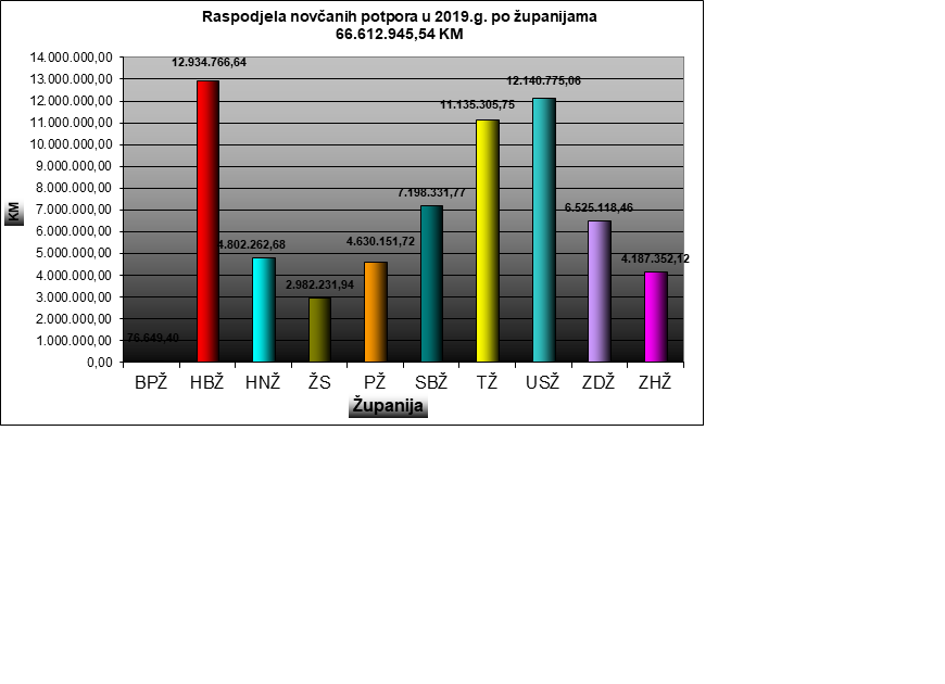 Prema podatcima iz grafikona vidljivo je da su poljoprivredni proizvođači s područja HBŽ dobili najviše novčanih sredstava iz Proračuna F BiH u 2019. godini. Nadamo se da ćemo i u 2020. godini nastaviti sa povećanjem poljoprivredne proizvodnje u HBŽ, priopćeno je iz Ministarstva poljoprivrede, vodoprivrede i šumarstava HBŽ.