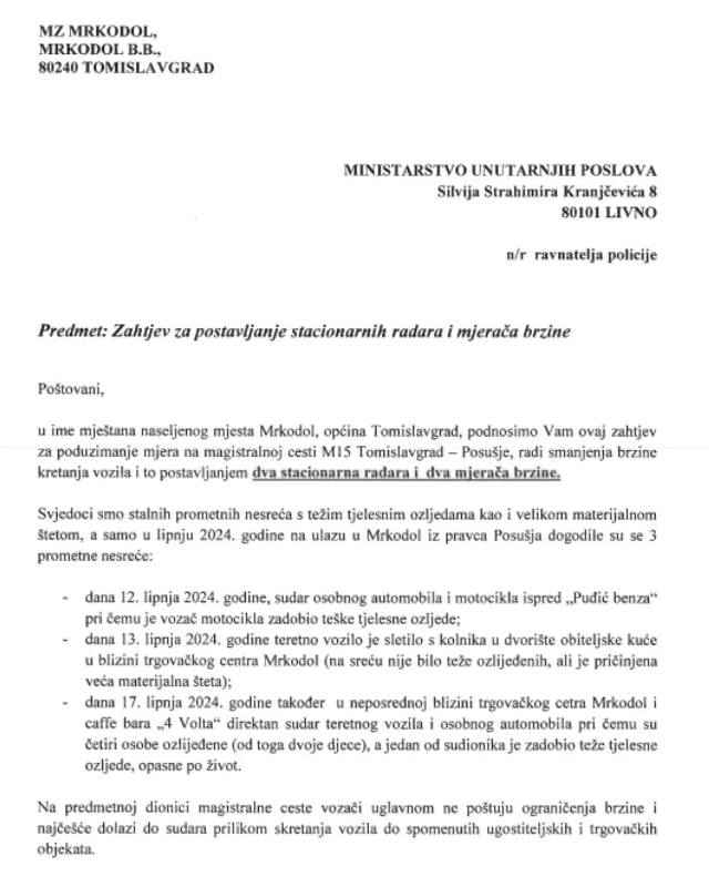 Danas smo predali Zahtjev za postavljanje stacionarnih radara i mjerača brzine.
