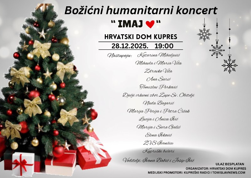 koji će se održati u NEDJELJU , 28. 12. 2025. godine, u velikoj dvorani Hrvatskoga doma Kupres, s početkom u 19 sati.