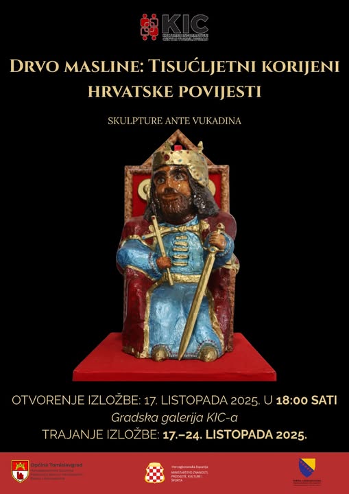 U organizaciji Kulturno-informativnog centra Tomislavgrad u petak, 17. listopada 2025. godine, s početkom u 18:00 sati, bit će otvorena izložba skulptura pod nazivom ”Drvo masline: tisućljetni korijeni hrvatske povijesti”, autora Ante Vukadina.