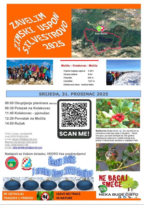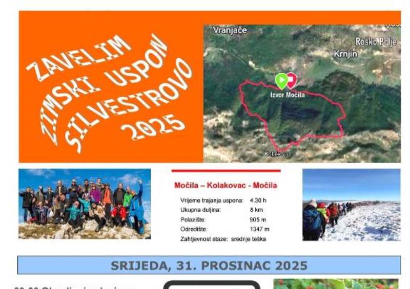 obavijstiTG ČestitkeTG SportNAJAVA/POZIV/ČESTITKA: PED “Zavelim” organizira tradicionalni zimski uspon na Silvestrovo na Zavelim 31. prosinca 2025.tomislavnews23. prosinca 2025.posted on pro. 23, 2025 at 11:23 am23. prosinca 2025.487Pregleda Planinarsko-ekološko društvo “Zavelim” organizira tradicionalni susret na mitski Zavelim, na Silvestrovo, u srijedu, 31. prosinca, 2025. godine. VIŠE INFORMACIJA NA PLAKATU! www.tomislavnews.com/PED “Zavelim” Tagovi:njavapedpoljeroškousponzavalimZavelimShare on FacebookShare on XMoretomislavnews23. prosinca 2025.prethodni članakDOBRO vam umjereno oblačno i tiho jutro iz Tomislavgrada!idući članakHNK Tomislav upozorava djecu i roditelje da je strogo zabranjeno bacanje petardi i drugih pirotehničkih sredstava na teren s umjetnom travom Preporučujemo za vasTG ČestitkeTG Kultura/ZabavaFOTO NAJAVA: Priča koja se pamti – oproštajna večer maturanatatomislavnews29. travnja 2026.468 views468Pročitaj više...Bosna i HercegovinaTG ČestitkeTG Kultura/ZabavaČESTITAMO: Dodjelom nagrada jučer je završen 23. Festival srednjoškolskog teatra BiH u Tomislavgradutomislavnews29. travnja 2026.298 views298Pročitaj više...obavijstiTG SportOBAVIJEST: Boris Grbavac više nije trener HNK “Tomislav” Tomislavgradtomislavnews27. travnja 2026.631 views631Pročitaj više...