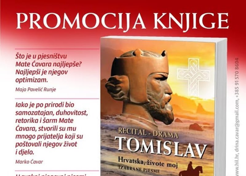 NAJAVA Promocija knjige Mate Ćavara u Tomislavgradu: Recital – drama TOMISLAV/Hrvatska, živote moj – Izabrane pjesme
