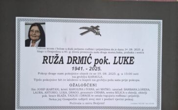 OBAVIJEST O SMRTI: Preminula je Ruža Drmić, pok. Luke (1941. – 2025.)