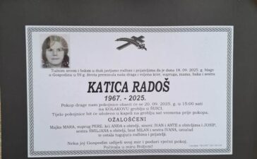 OBAVIJEST O SMRTI: Preminula je Katica Radoš (1967. -2025.)