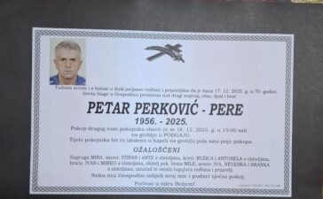 OBAVIJEST O SMRTI: Preminuo je Tadija Perković (1942. – 2026.)