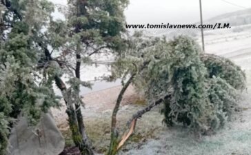 FOTO: Prošle večeri jak vjetar i ledena kiša lomili su stabla u nekoliko duvanjskih sela, prekinuta opskrba el. energijom