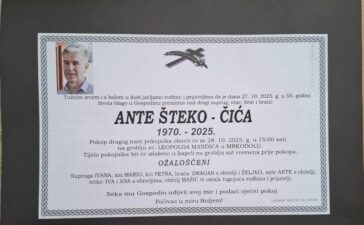 S tugom u srcu i bolom u duši javljamo svoj rodbini i prijateljima tužnu vijest da je naš dragi Ante...