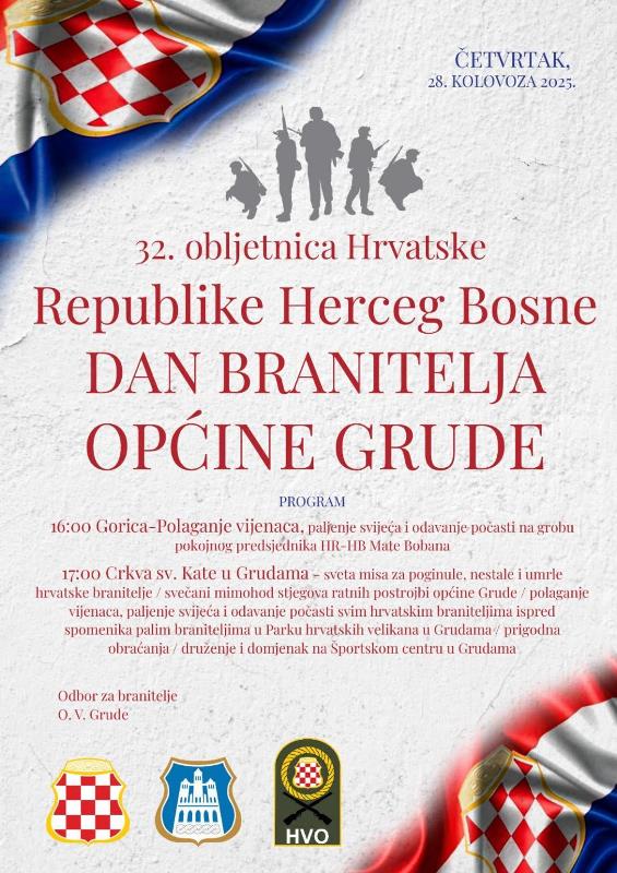 Obilježavanje će završiti prigodnim obraćanjima te druženjem i domjenkom u Športskom centru u Grudama, objava je RTV HB