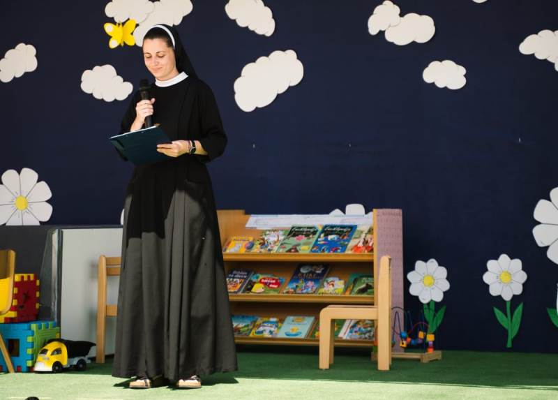 Po Božjoj providnosti završila sam Predškolski studij na FPMOZ-u u Mostaru. Nisam ni u snu mislila da ću jednoga dana raditi kao odgajateljica, ali Božji planovi su nepredvidivi i uvijek puno bolji i ljepši od onoga što mi možemo zamisliti. I svaki prihvaćen plan koji nije moj, nego Njegov, znači i ujedno vršenje volje Onoga koji dariva. To darovano i privilegirano vrijeme je bilo za predavanja, učenje i usavršavanje kako bih mogla raditi ono što je potrebno našoj Zajednici. Uz učenje naravno dolazi i naš svakodnevni dnevni red koji obuhvaća molitvu, te dužnosti koje svaka od nas sestara ima.